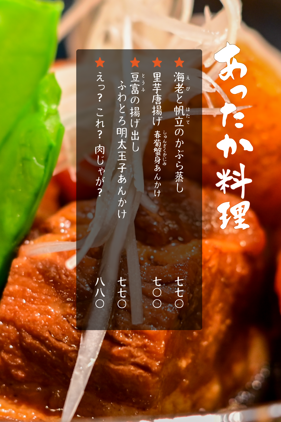 目次新鮮なびんび大地の恵みサラダ酒のつまみになる逸品熱々焼物あったか料理一休庵たかたの鍋料理やっぱり食べたい揚げ物お腹満足しあわせ定食しめの逸品別腹デザート新鮮なびんび 大地の恵みサラダ 酒のつまみになる逸品 熱々焼物 あったか料理 一休庵たかたの鍋料理 やっぱり食べたい揚げ物 お腹満足しあわせ定食 しめの逸品 別腹デザート